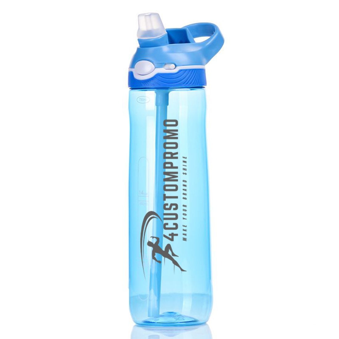 Custom 25 oz Tritan Water Bottle with Straw & Handle Add to Wish List Stay refreshed all day with this custom 25 oz Tritan water bottle. Its clear body and easy-to-read volume scale help you keep track of how much you drink.
