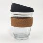 Custom 12 oz Glass Coffee Cup with Cork Sleeve Add to Wish List Experience the charm of your new favorite coffee cup—a sleek 12 oz glass mug designed to keep up with your busy life. Whether you're on the move or simply savoring a quiet moment, this cup, complete with a natural cork sleeve and secure silicone lid, offers both style and practicality.