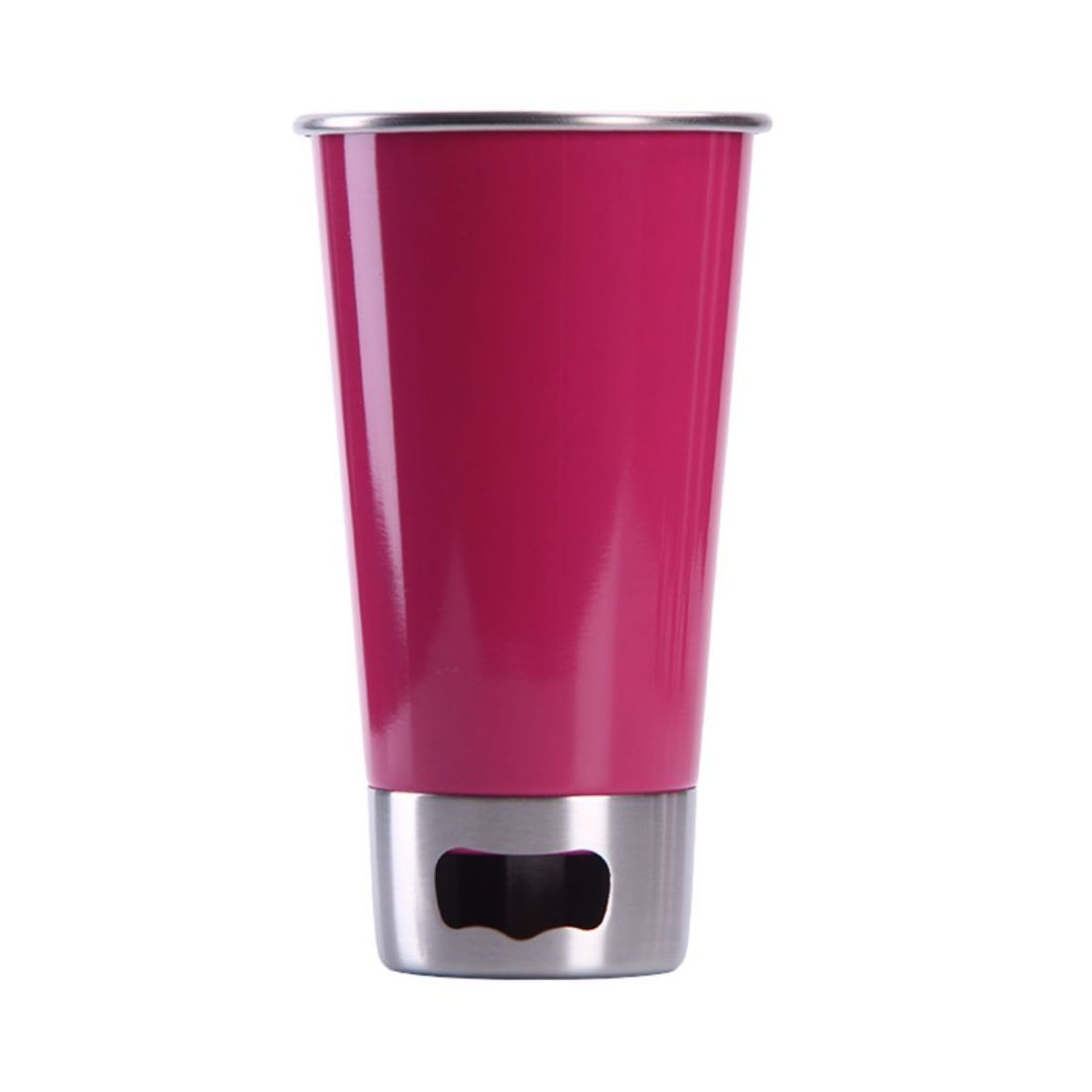 Custom 16 oz Stainless Steel Beer Cup w/ Opener Add to Wish List Enjoy your favorite drink with our custom 16 oz stainless steel beer cup with a built-in bottle opener. Its tough build makes it a great choice for outdoor events and casual gatherings.