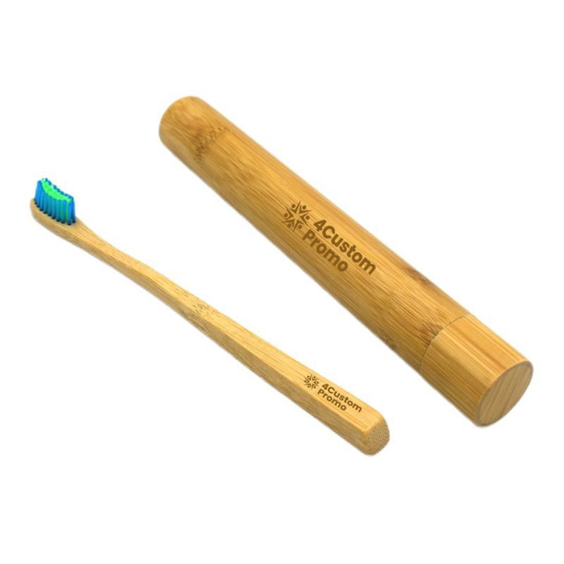 Custom Bamboo Toothbrush Set with Case Add to Wish List Switch to a greener way of brushing with this bamboo toothbrush set. The included case keeps your brush protected, making it perfect for travel or daily storage.