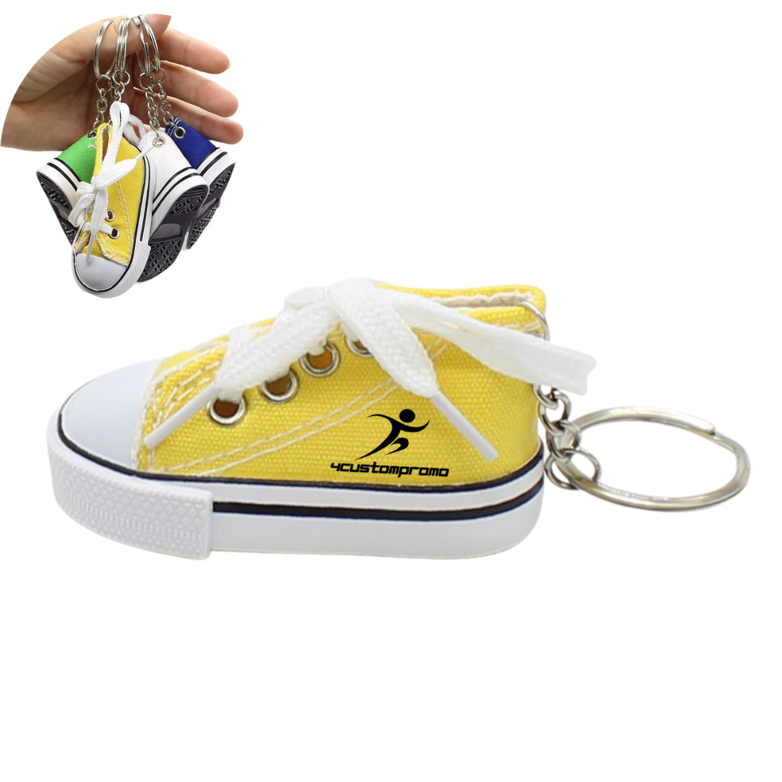 Custom Canvas Mini Sneaker Keychain Add to Wish List Add a playful twist to your marketing with our mini canvas sneaker keychains. These aren't just ordinary keytags; fashioned to look like classic hi-top sneakers, they bring a nostalgic charm that grabs attention.