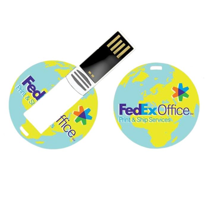 Full Color Custom Round Card USB Flash Drive Add to Wish List Not your typical USB drive. This round card USB flash drive is slim, portable, and perfect for sharing files while showcasing your brand in a unique way.